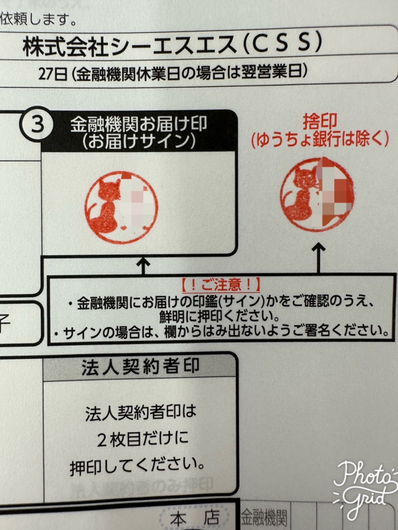 する際に必要な銀行印。