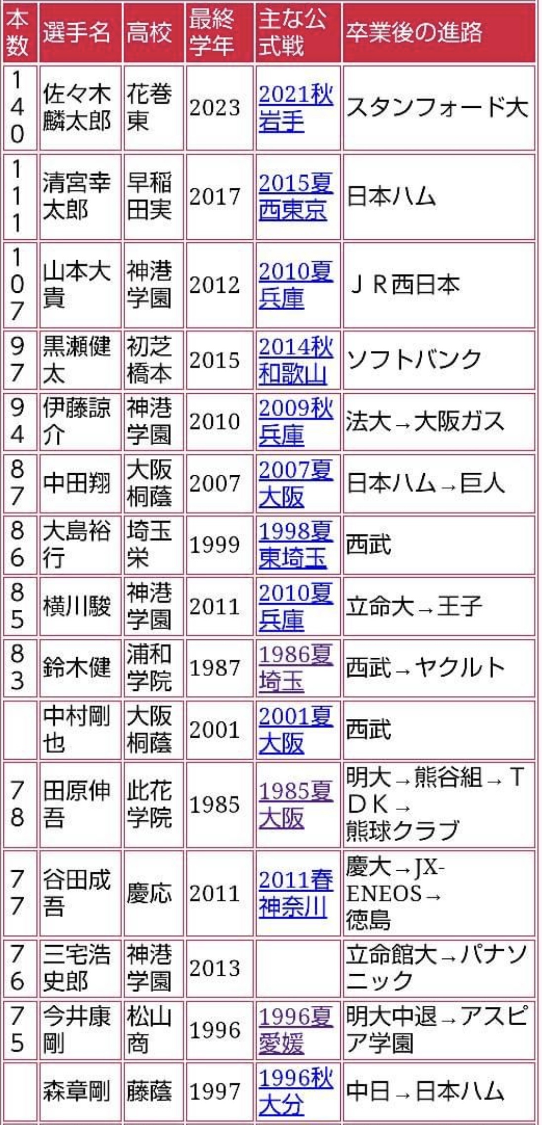 高校通算の数字は、