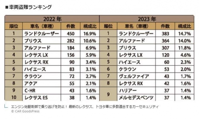 今また盗難の増加傾向にある。