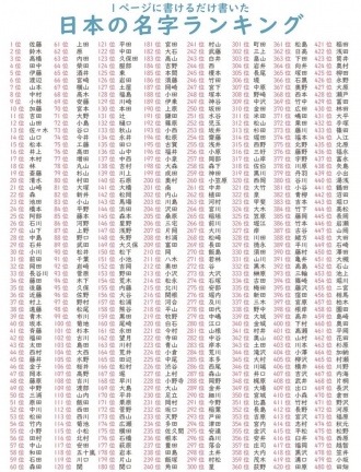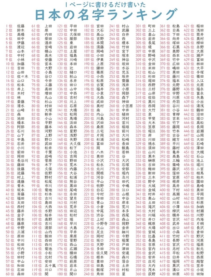 苗字のランキング