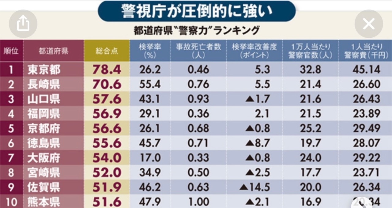 警察力ランキングが