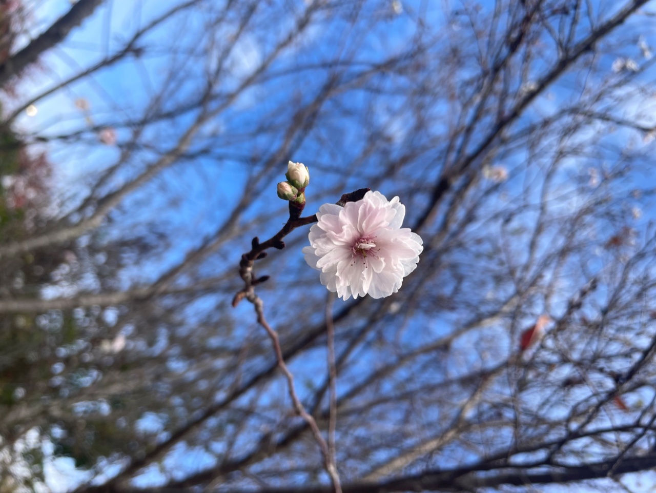 これは…桜?! 調べてみましたが、十月桜、冬桜とは違うような… 暖かい日が続いていたからでしょうか☺︎ 紅葉も綺麗な公園で、 息子はストライダーを乗り回していました!