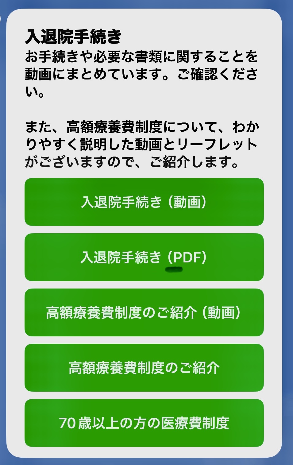 入院の説明や、高額医療費の説明、