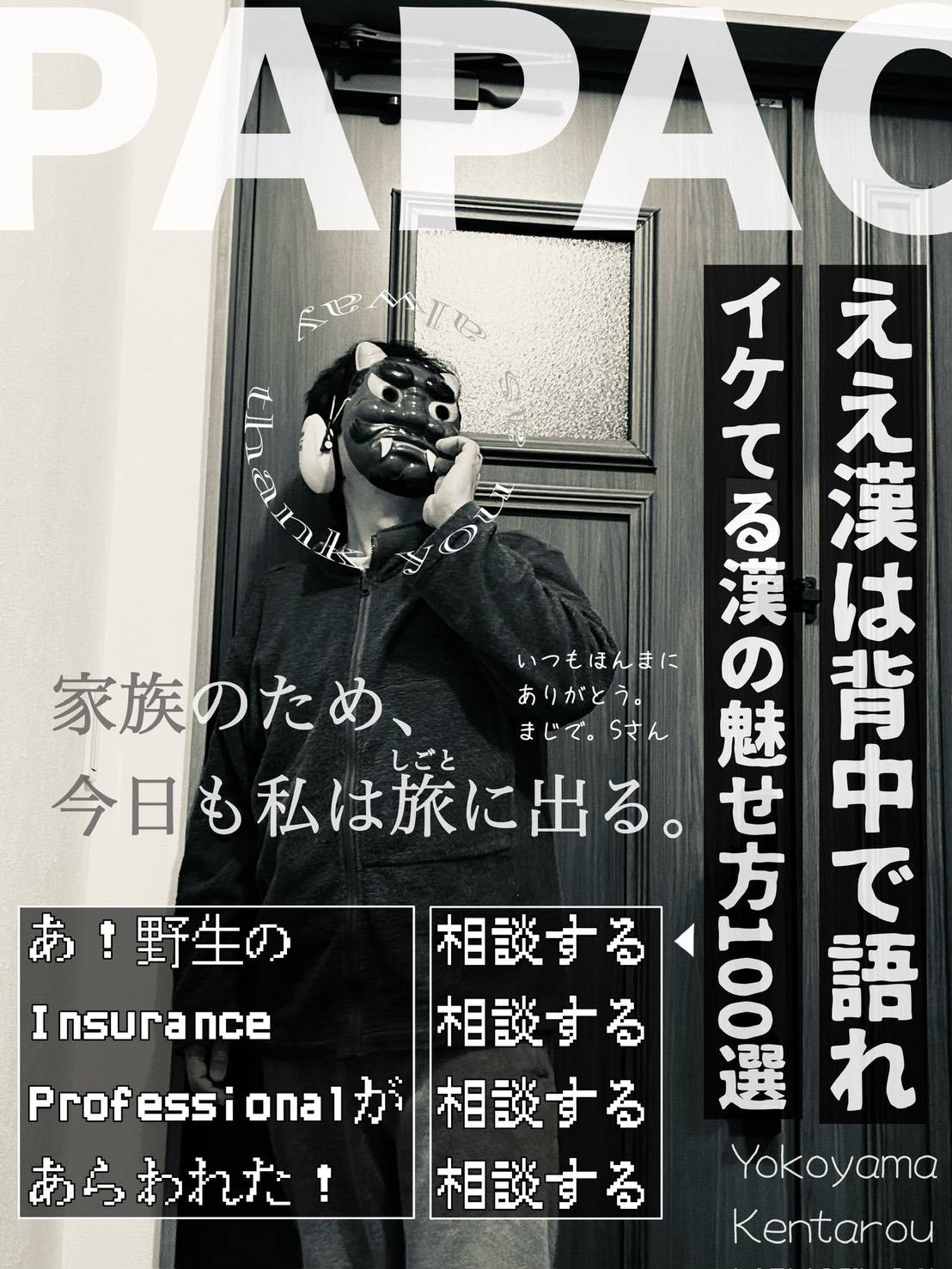 先日長女が「夜眠れんかったけん、父さんが節分の鬼になった時撮った写真を男性誌の表紙チックに加工してみたからあげる」って。